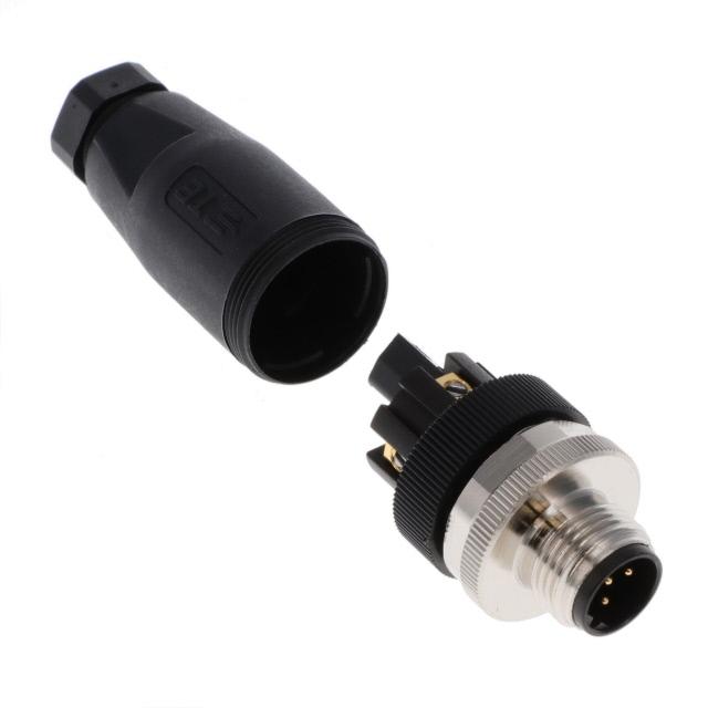 TE Connectivity circular connector, male, T411 series, M12, 5-pin, Cable mount Alias: M12,MALE,STRAIGHT,B CODE,5P,PG7,GOLD