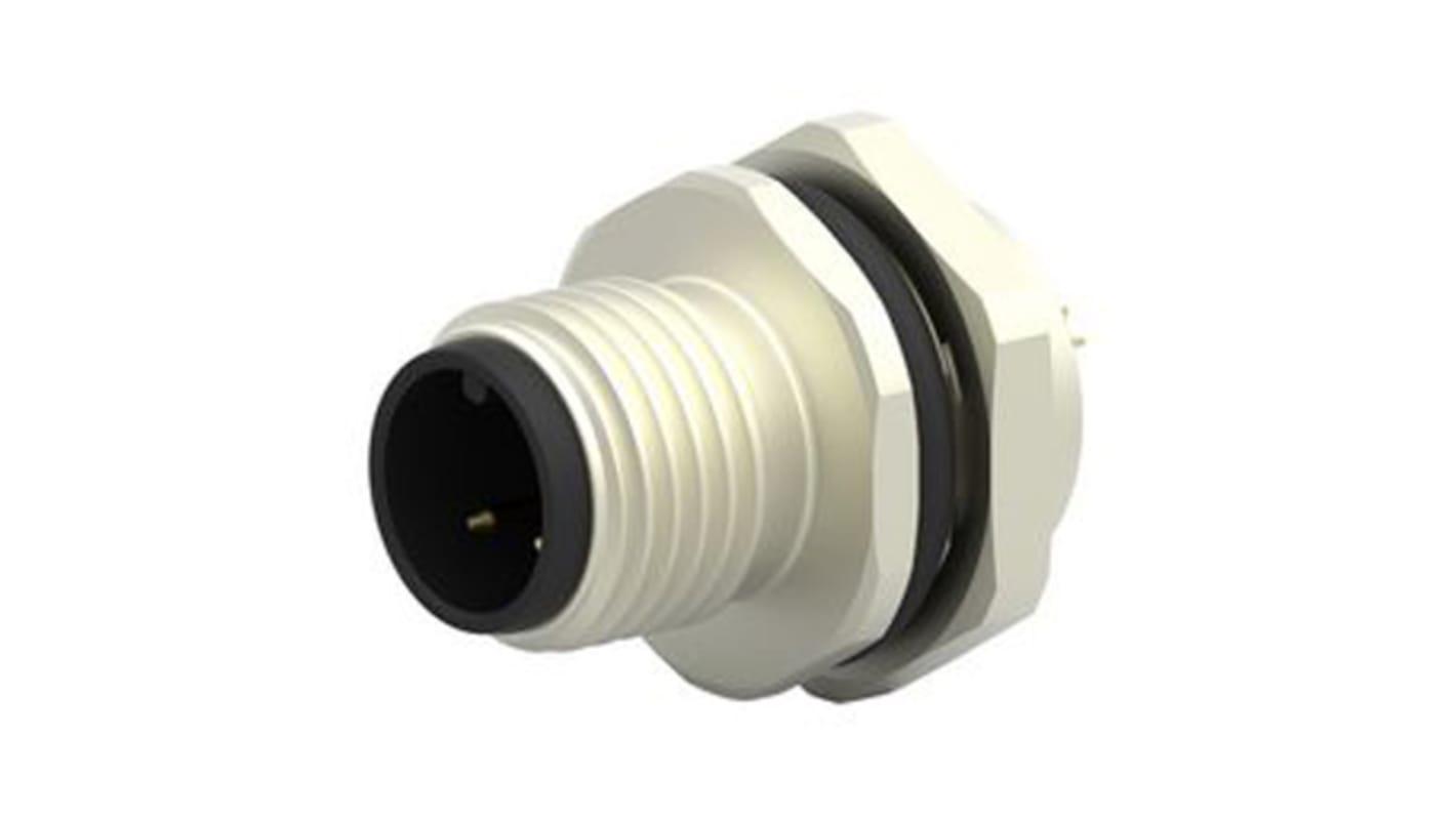 Standard Circular Connectors, Wire-to-Panel, 3 Position, Sealable, Printed Circuit Board, Signal, Nickel, Brass, A Polarization Code, M12 Connector Alias: M12,FRONT MOUNTING,MALE,A CODE,3P