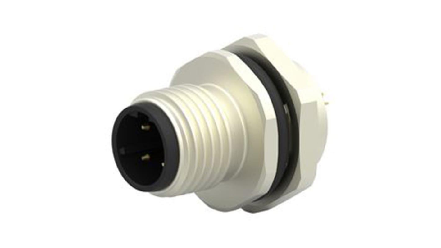 Standard Circular Connectors, Wire-to-Panel, 4 Position, Sealable, Printed Circuit Board, Signal, Reverse Gender, Nickel, Brass, M12 Connector Alias: M12,FRONT MOUNTING,MALE,D CODE,4P