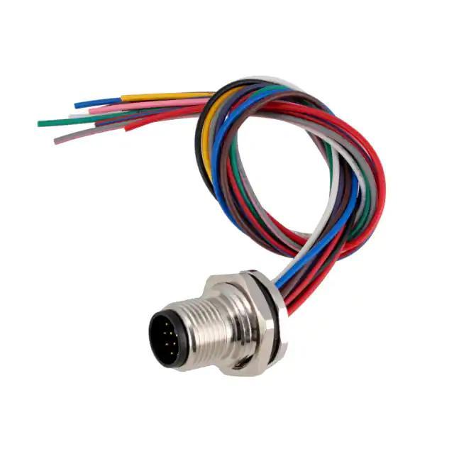 Standard Circular Connectors, Wire-to-Panel, 12 Position, Sealable, Wire & Cable, Signal, Panel Mount, Reverse Gender, Nickel, Brass, M12 Connector; Alias: M12,REAR MOUNT,MALE, A, 12P, 0.2M WIRE