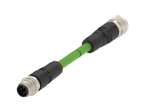 M12 Cable Assembly, 4 Position, 5 m, Industrial Ethernet, Ethernet, Code D, M12 Plug, M12 Socket, Shielded, Double Ended, PA66+25GF; Alias: M12D4-MS-FS-PVC-22SH-TYPE B GREEN-5.0M