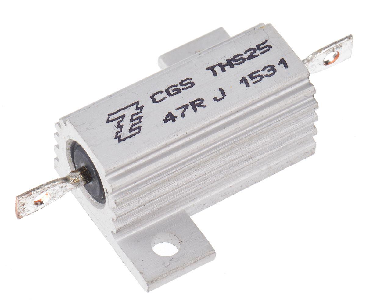 47 Ω, Wire Wound, Power Resistor, 51 x 28 x 15 mm, 2 Termination, Loose Piece - Tray, 5 %, 25 W, ±50 ppm/°C, Solder Lug Termination, CGS THS; Alias: THS25 47R 5%