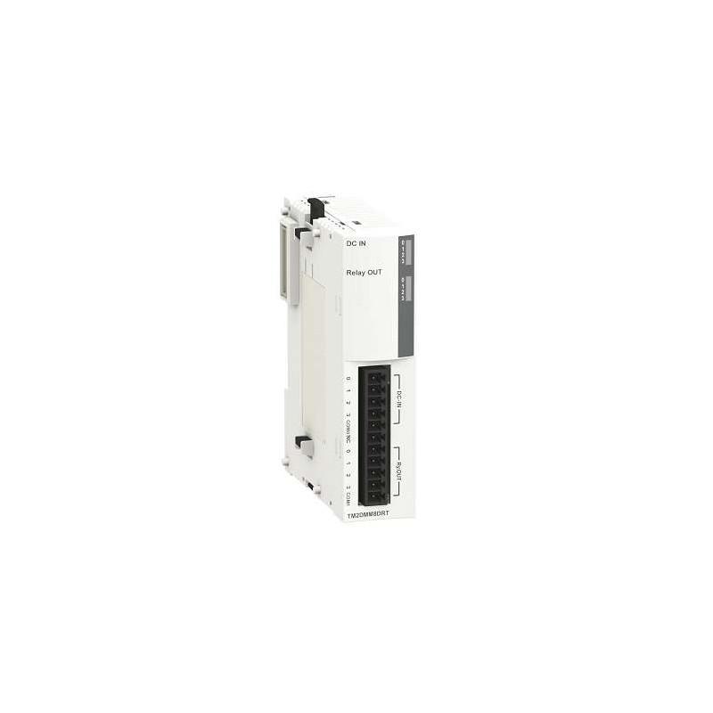 Discrete I/O module, Modicon M238 logic controller, 4 inputs 24 V DC, 4 outputs relay, 1 terminal block