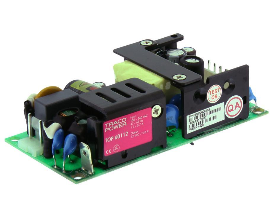 TRACOPOWER TOP 60522 switching power supply, 55W, input 110 370 V dc, 90 264 V ac, output 5 V dc,