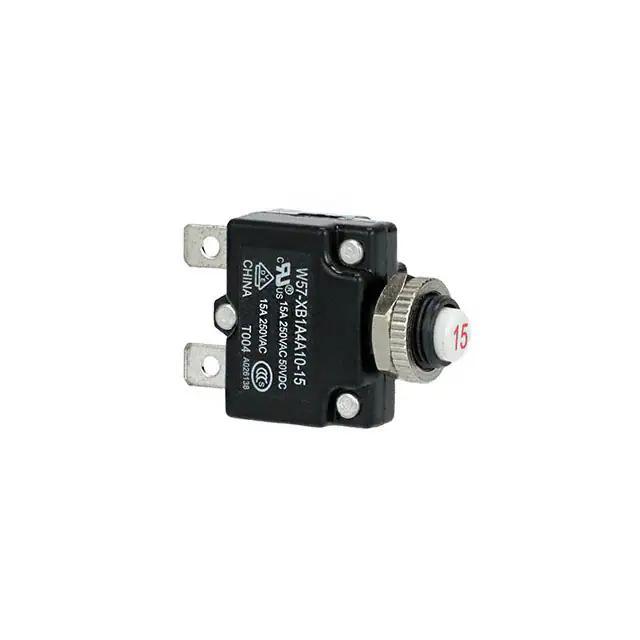 Circuit Breakers, Thermal, Series Trip, White, Operating Voltage 250 VAC, Operating Voltage 50 VDC, 15A Current Rating, 1 Pole, Potter & Brumfield W57 Alias: W57-XB1A4A10-15=CKTBKR,THERM,P