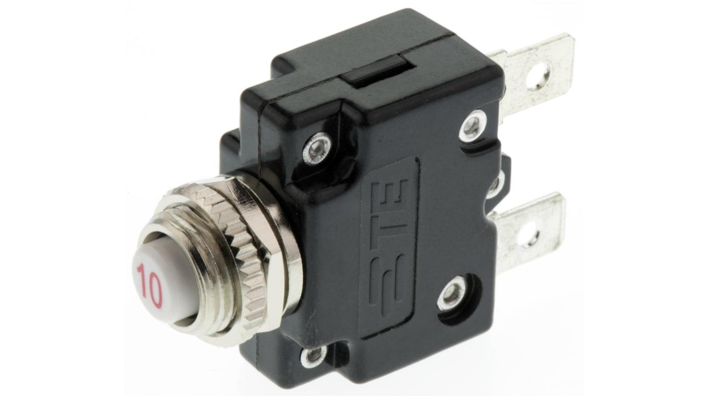 Circuit Breakers, Thermal, Series Trip, White, Operating Voltage 250 VAC, Operating Voltage 50 VDC, 10A Current Rating, 1 Pole, Potter & Brumfield W57 Alias: W57-XB7A4A10-10=CKTBKR,THERM,P