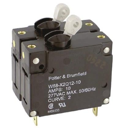 TE Connectivity thermal circuit breaker 2-pole 10A, 38.1mm 277V ac Alias: W68-X2Q1210 W68-X2Q12-10=M6/M7/M9/W6/W7