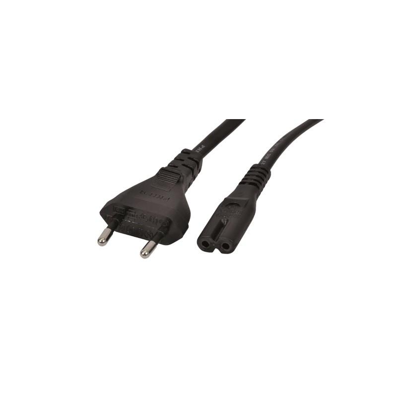 AC power cord with Euro 2 Pin plug and IEC320-C7 inlet plug